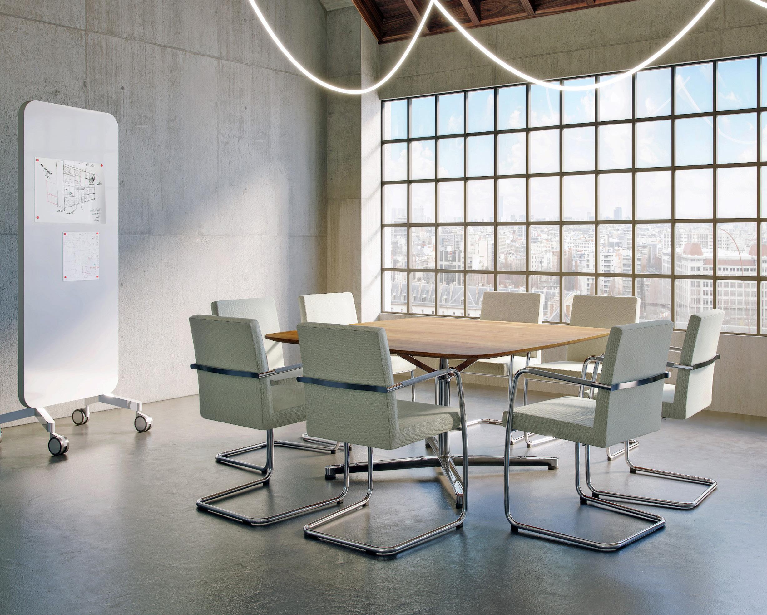 Une élégance classique pour les conférences, les réunions, les réceptions et les bureaux de direction. Dexter est un siège cantilever confortable, conçu selon des critères de design modernes. Sa forme séduit par son naturel et s‘intègre parfaitement dans l‘esprit minimaliste actuel. C‘est un siège qui offre un grand confort d‘assise. Avec son design à la fois classique et moderne, ce siège cantilever peut être utilisé dans tous les espaces de communication représentatifs du bureau.