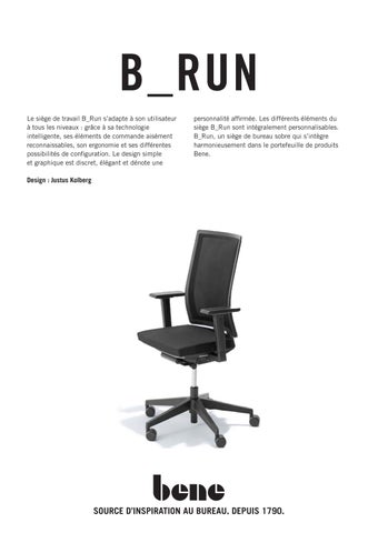 personnalité affirmée. Les différents éléments du siège B_Run sont intégralement personnalisables. B_Run, un siège de bureau sobre qui s’intègre harmonieusement dans le portefeuille de produits Bene.