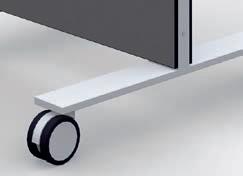 Piètement : pour une meilleure stabilité, impératif pour les éléments autoportants ; possible avec socle ; pour toute extension linéaire sans éléments RV de raccordement en L, en T ou en X, pied supplémentaire à définir pour chaque joint entre les éléments ; avec ou sans roulettes ; module de base raccourci de la longueur des roulettes ; couleur : aluminium thermolaqué