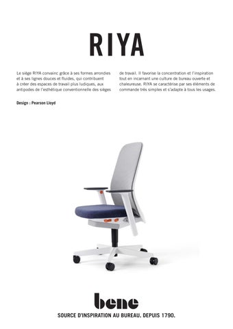Le siège RIYA convainc grâce à ses formes arrondies et à ses lignes douces et fluides, qui contribuent à créer des espaces de travail plus ludiques, aux antipodes de l’esthétique conventionnelle des sièges de travail. Il favorise la concentration et l’inspiration tout en incarnant une culture de bureau ouverte et chaleureuse. RIYA se caractérise par ses éléments de commande très simples et s’adapte à tous les usages.