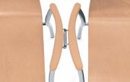 Coque en bois stratifié. Plaqué hêtre ou érable ou finition laquée – bord en bois apparent en option. Rembourrage intégral, textile ou cuir.