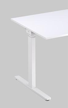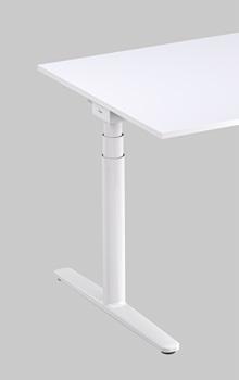 LEVEL PURE comes with a T-leg base with 10 mm of floor compensation and a rectangular desktop, optionally available with Soft Edge. Depending on the configuration, the desk comes fit ted with a one-part column at a fixed height or with a two-part ratcheted column with a height of between 63 and 86 cm.
