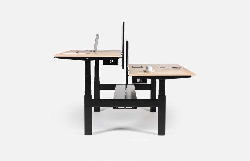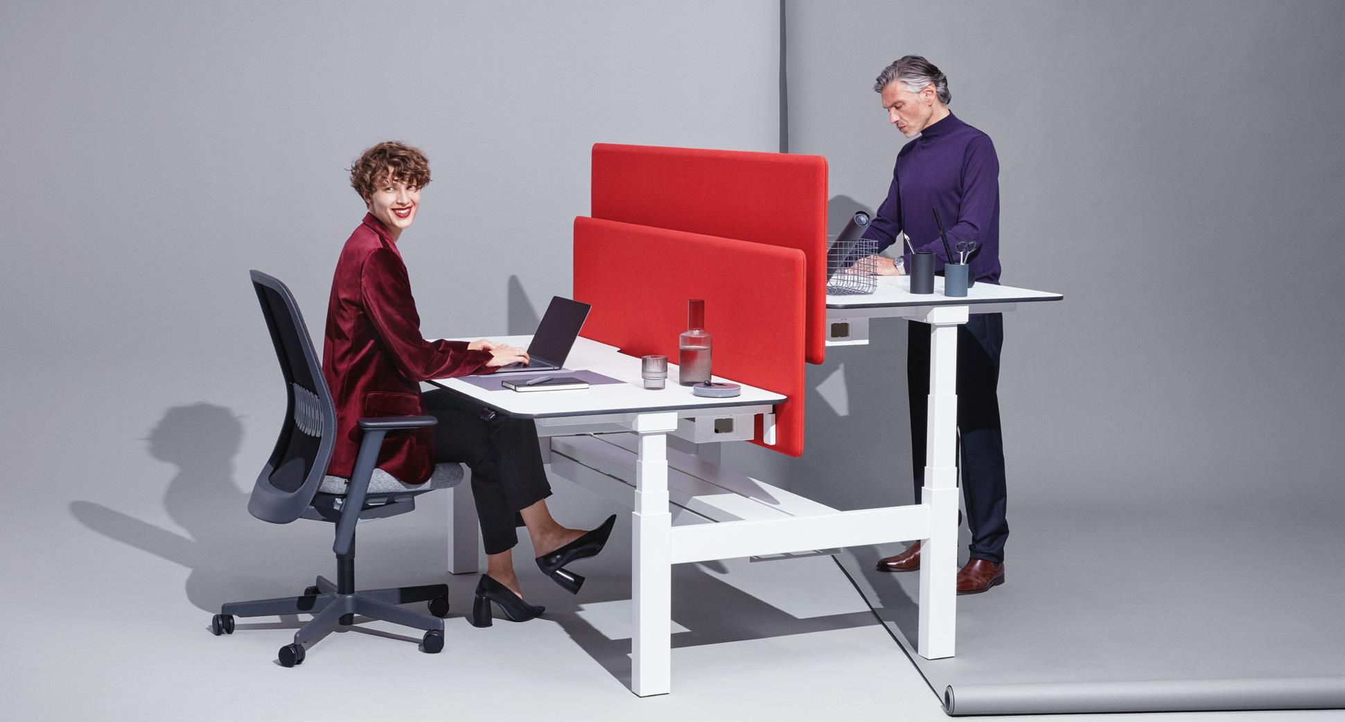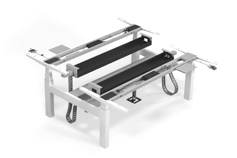 LEVEL LIFT TWIN comprises two independently height adjustable desks that can be configured with an addi tional central cable management tray as an option.