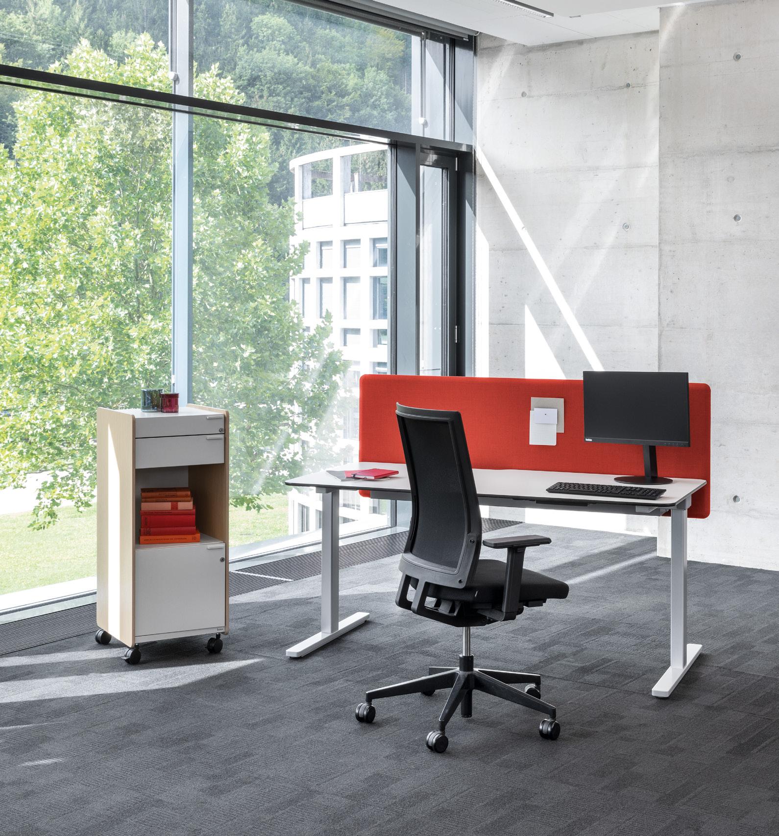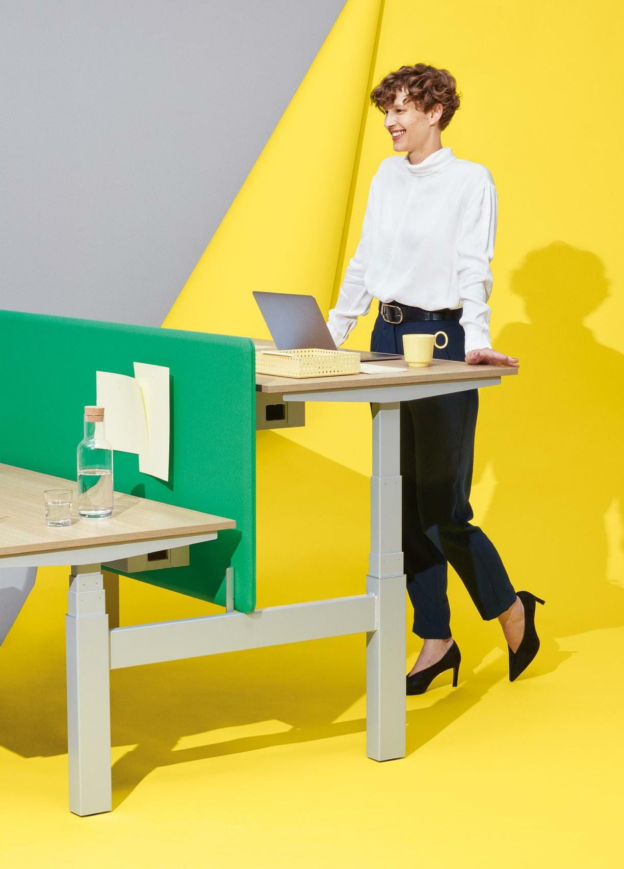 With the LEVEL LIFT product family, Bene offers workstations that moti vate people to move around more: with a range of designs, colours and sur face finishes. The height adjustable desks encourage alternating between sitting and standing and make an im portant contribution to keeping body and mind active.