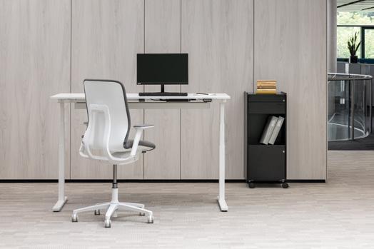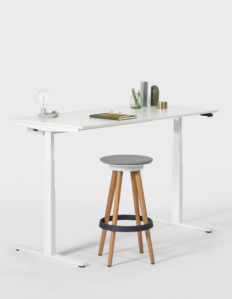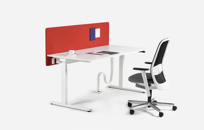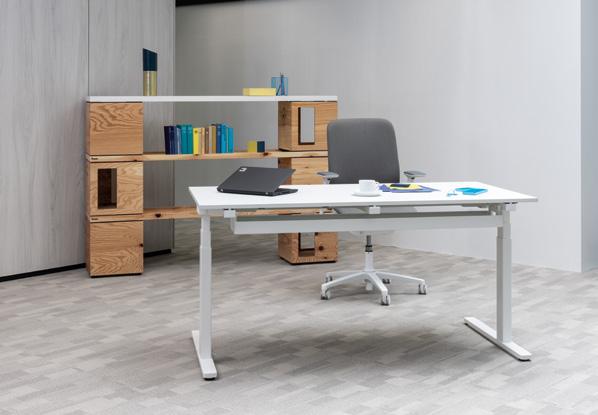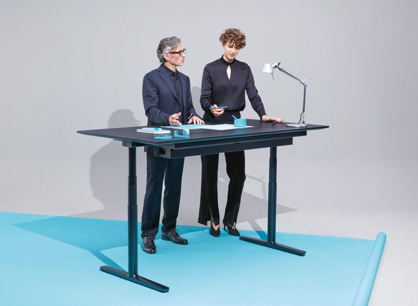 CH Above anything else, I’m a firm be liever myself in the benefits of an elec trically height adjustable desk. I saw the complexity of the issue as a design chal lenge for me. My objective was to create a modern piece of furniture with a light weight look, something that didn’t come across as an ergonomically, utilitarian unit but that didn’t completely disown its technical nature either.