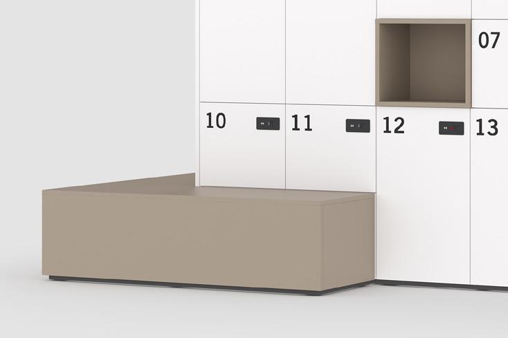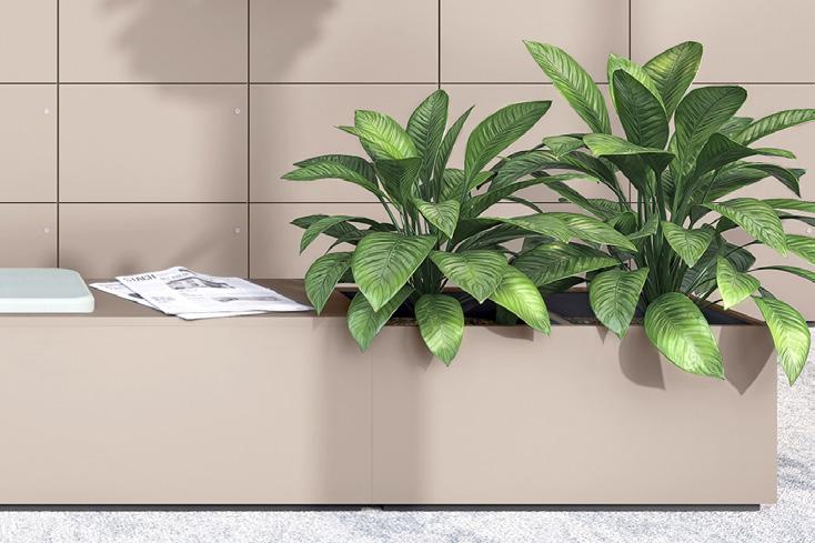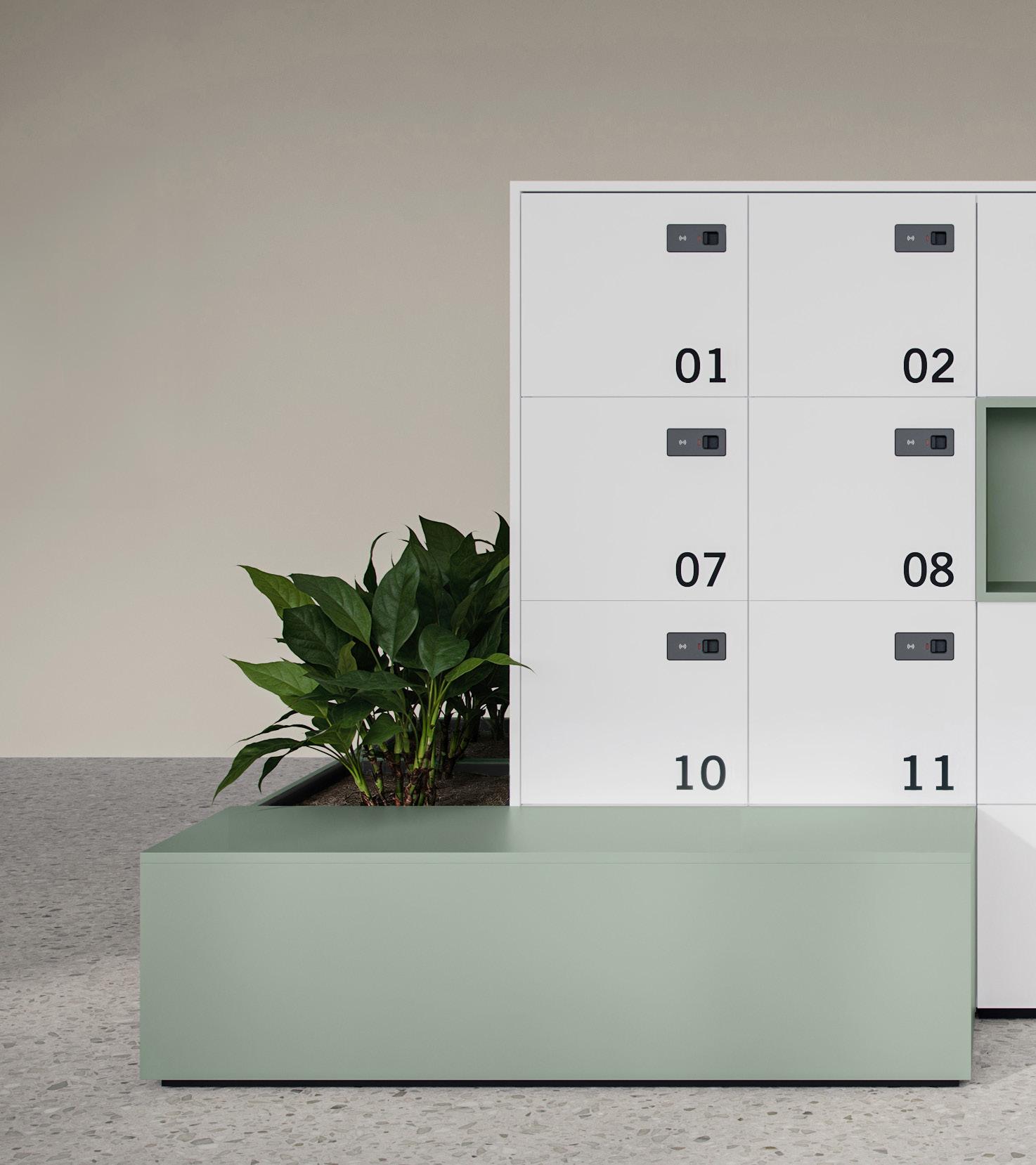 The optional LOCKER_S bench adds even more comfort. It can be connected to the cabinet or placed freely within the room. The Planter Box offers space for greenery and helps create a pleasant indoor environment.