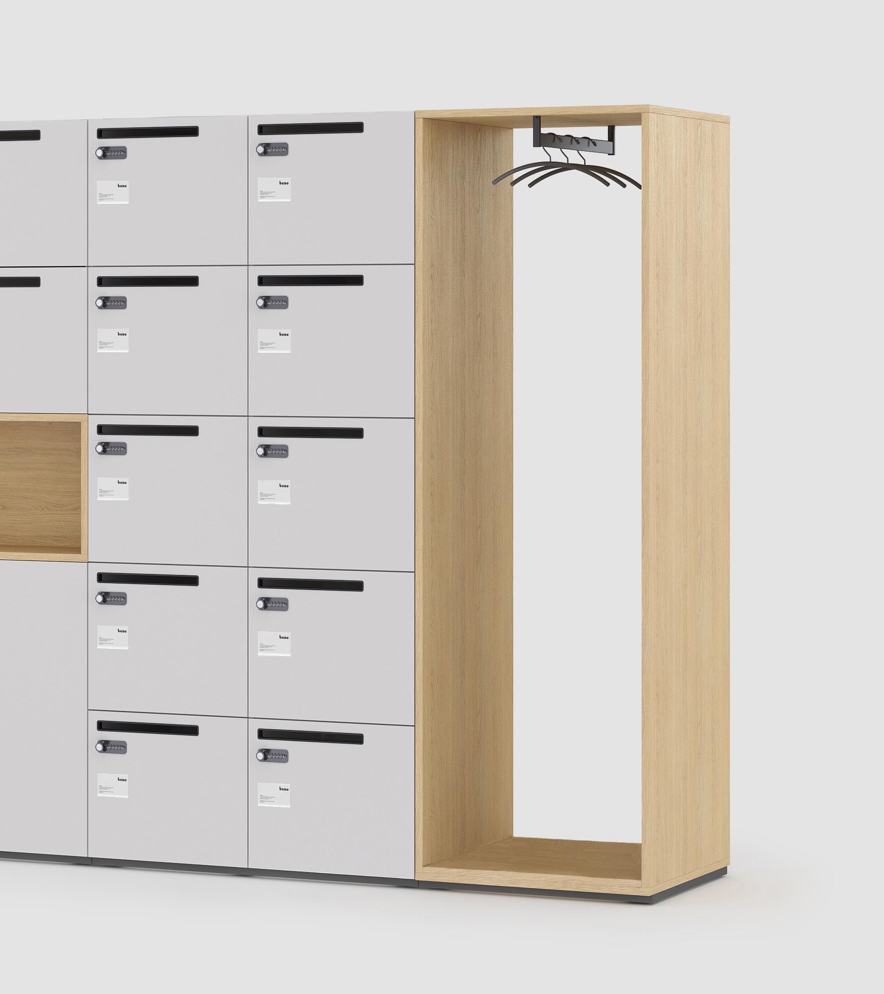 The open LOCKER_S Box provides an additional design feature, ideal for decorative elements or as an open storage space. The freely selectable width and depth offer maximum flexibility in design.