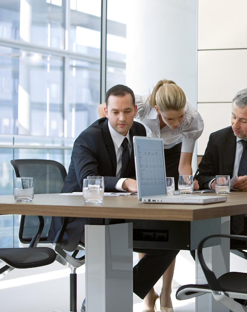 Mit dem Management-Programm P2 Group eröffnet Bene neue Dimensionen der Bürogestaltung: Die kubischen Formen gliedern Räume, geben ihnen Eindeutigkeit und Charakter und schaffen unverwechselbare Orte der Kommunikation. P2 Group vereint die hohen Anforderungen an Funktionalität und Qualität mit der Freiheit individueller Gestaltung. Bemerkenswert und innovativ die Integration moderner Medien- und Informationstechnik.