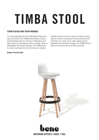 seating furniture, and thus helps to create an atmosphere in which the process of communication and creativity can unfold. As an ideal opportunity for teamwork and informal exchange, the TIMBA Stool is open to the various forms of office activities.