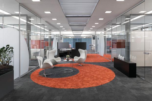 The wall system can be single- or double-glazed with a variety of glass thicknesses, depending on static and acoustic requirements. The RG glass wall represents the middle-ground between rigid architectural elements and flexible interior fitting systems.