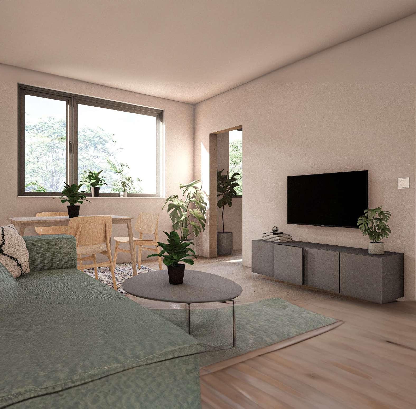 VIZUALIZÁCIE UKAZUJÚ POHĽAD NA RIADITEĽSKU KANCELÁRIU A KUCHYNKU SO ZELEŇOU.
