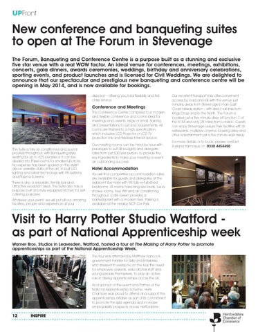 Visit to Harry Potter Studio Watford as part of National Apprenticeship week Warner Bros. Studios in Leavesden, Watford, hosted a tour of The Making of Harry Potter to promote apprenticeships as part of the National Apprenticeship Week. The tour was attended by Matthew Hancock, government minister for Skills and Enterprise, who stressed to everyone on the tour the need for employers, parents, educational staff and young people themselves, to play an active role in driving apprenticeships across the UK. As a sponsor of the event and Partner of the National Apprenticeship Scheme, Herts Chamber was proud to attend and support the apprenticeships initiative as part of its commitment to promote the skills agenda and increase employability prospects across Hertfordshire.