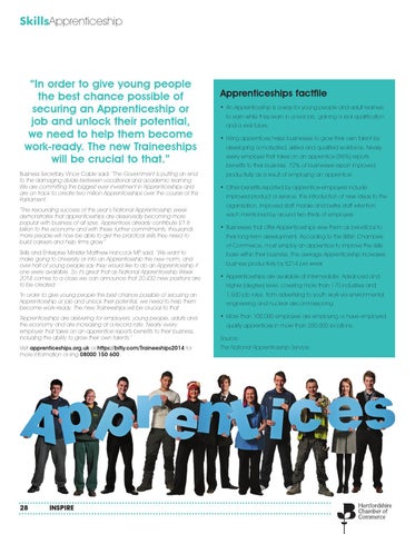 “In order to give young people the best chance possible of securing an Apprenticeship or job and unlock their potential, we need to help them become work-ready. The new Traineeships will be crucial to that.” Business Secretary Vince Cable said: “The Government is putting an end to the damaging divide between vocational and academic learning. We are committing the biggest ever investment in Apprenticeships and are on track to create two million Apprenticeships over the course of this Parliament. “The resounding success of this year’s National Apprenticeship week demonstrates that apprenticeships are deservedly becoming more popular with business of all sizes. Apprentices already contribute £1.8 billion to the economy and with these further commitments, thousands more people will now be able to get the practical skills they need to build careers and help firms grow.” Skills and Enterprise Minister Matthew Hancock MP said: “We want to make going to University or into an Apprenticeship the new norm, and over half of young people say they would like to do an Apprenticeship if one were available. So it’s great that as National Apprenticeship Week 2014 comes to a close we can announce that 20,432 new positions are to be created. “In order to give young people the best chance possible of securing an Apprenticeship or job and unlock their potential, we need to help them become work-ready. The new Traineeships will be crucial to that.