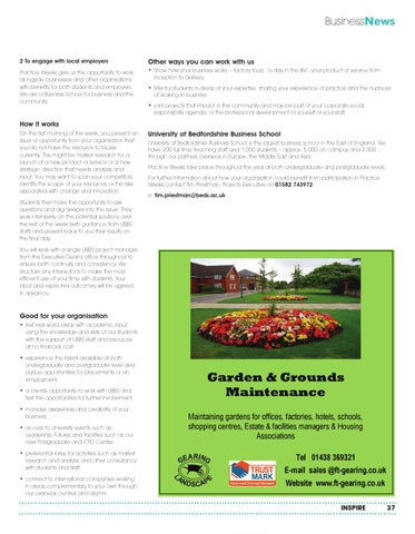 University of Bedfordshire Business School University of Bedfordshire Business School is the largest business school in the East of England. We have 200 full time teaching staff and 7,000 students – approx. 5,000 on campus and 2,000 through our partners overseas in Europe, the Middle East and Asia. Practice Weeks take place throughout the year at both undergraduate and postgraduate levels. For further information about how your organisation could benefit from participation in Practice Weeks contact Tim Priestman, Projects Executive on 01582 743972. e: tim.priestman@beds.ac.uk