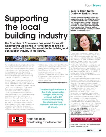 The Chamber of Commerce has joined forces with Constructing Excellence in Hertfordshire to bring a varied series of informative events to the building and construction industry in the county.