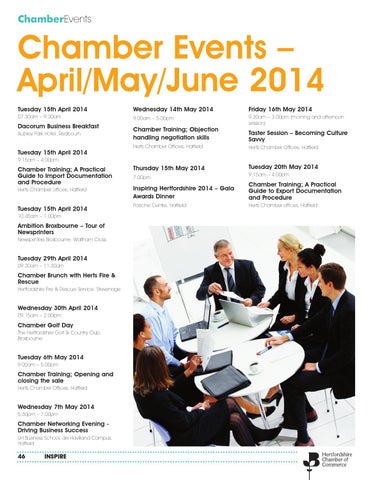 Chamber Events – April/May/June 2014 Tuesday 15th April 2014