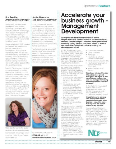 Accelerate your business growth Management Development An aspect of development which is often neglected is the development of supervisors/team Leaders and Managers. So often these people are currently doing the job and then inherit a level of responsibility – often without any training or development at all! Is it any wonder that so often this ends in disaster; in the new appointees feeling overworked, undermined and then ‘out of here!’ While the staff being managed lose motivation, lose faith in the organisation, and step onto a downward spiral of negativity and disaffection. At Niche Learning Programmes we passionately believe in internal promotion wherever possible; but not the negatives that occur as a result of lack of training. As a result we specialise in delivering training for: • Individuals who are interested in becoming a manager? This will aid your succession plans! • Individuals who are newly promoted to being a manager. This will facilitate their confidence in how to effectively manage a team, maintain motivation as well as be able to address issues and concerns • Training for experienced managers to aid their continued team development, productivity and success!