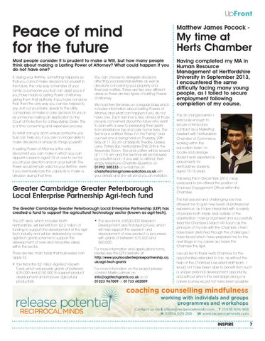 • The second is a £540,000 Research, Development and Prototyping Fund, which will help support the research and development of new product or processes with grants of between £10,000 and £60,000. For more information and applications forms, please see the LEP’s website at: http://www.yourlocalenterprisepartnership.co. uk/agri-tech-grants. For more information on the project please contact Martin Lutman on info@agritechgrants.co.uk or on 01223 967009 or 01733 602009.