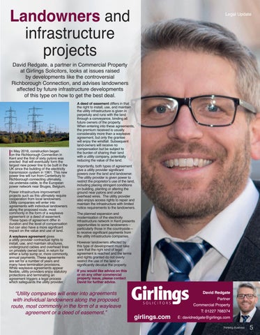 David Redgate, a partner in Commercial Property at Girlings Solicitors, looks at issues raised by developments like the controversial Richborough Connection, and advises landowners affected by future infrastructure developments of this type on how to get the best deal.