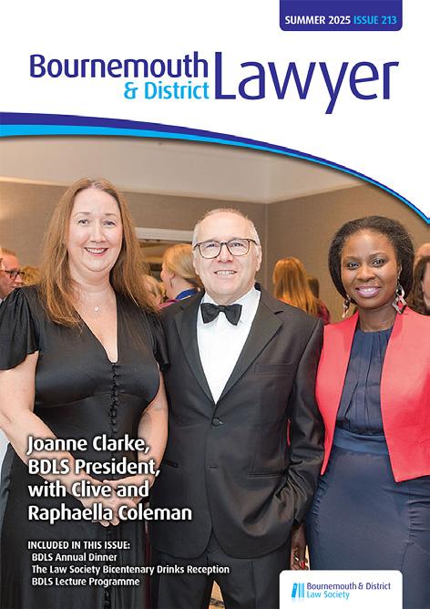 Iam delighted to write my first column as President of the Bournemouth and District Law Society. Over the past few months, I have had the pleasure of attending the Dorset Law Society, the Herefordshire Law Society the Hampshire Law Society and the Isle of Wight Law Society dinners, the Southern Area of Law Societies quarterly meeting and, of course, our own Bournemouth and District Law Society AGM. These events have offered a wonderful reminder of the strength, diversity and camaraderie that exists within the legal profession—both here at home and in our neighbouring regions.