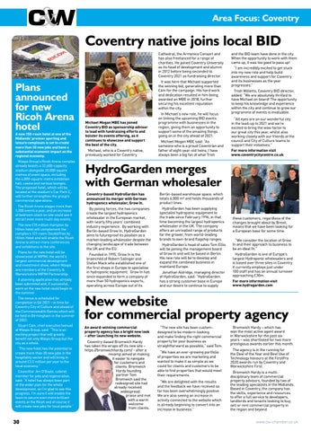 and the BID team have done in the city. When the opportunity to work with them came up, it was too good to pass up! “I am incredibly excited to get stuck into my new role and help build awareness and support for Coventry and its businesses as the year progresses.” Trish Willetts, Coventry BID director, added: “We are absolutely thrilled to have Michael on board! The opportunity to keep his knowledge and experience within the city and continue to grow our programme of events is invaluable. “All eyes are on our wonderful city in the lead-up to 2021 and we’re excited to bring the wow factor to our great city this year, whilst also working closely with our friends at the council and City of Culture teams to support their initiatives.” For more information visit www.coventrycitycentre.co.uk