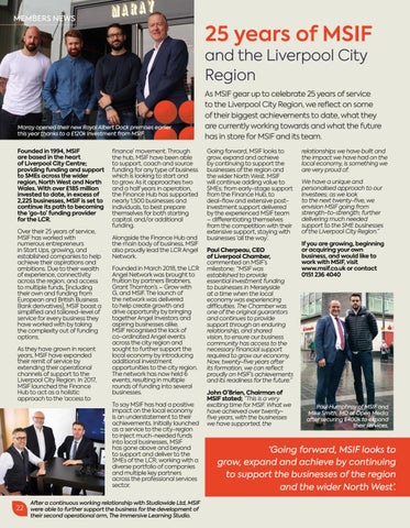 relationships we have built and the impact we have had on the local economy, is something we are very proud of. We have a unique and personalised approach to our investees; as we look to the next twenty-five, we envision MSIF going from strength-to-strength; further delivering much needed support to the SME businesses of the Liverpool City Region.” If you are growing, beginning or acquiring your own business, and would like to work with MSIF, visit www.msif.co.uk or contact 0151 236 4040