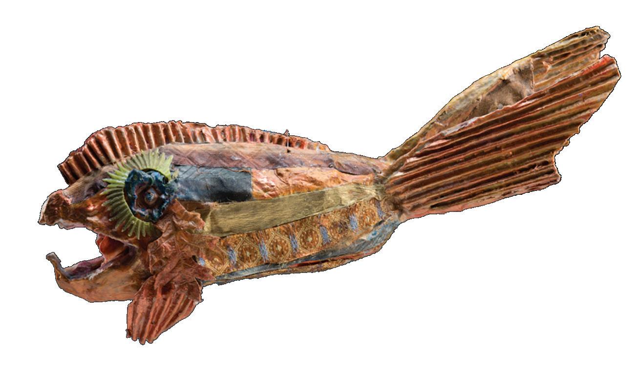 “All my sculptures are characters that have stories,” she affirms. “My intent is to generate a sense of ecological awareness. I teach people to look more closely at their environment and find their own materials. I believe the experience of making art should be available to everyone.”