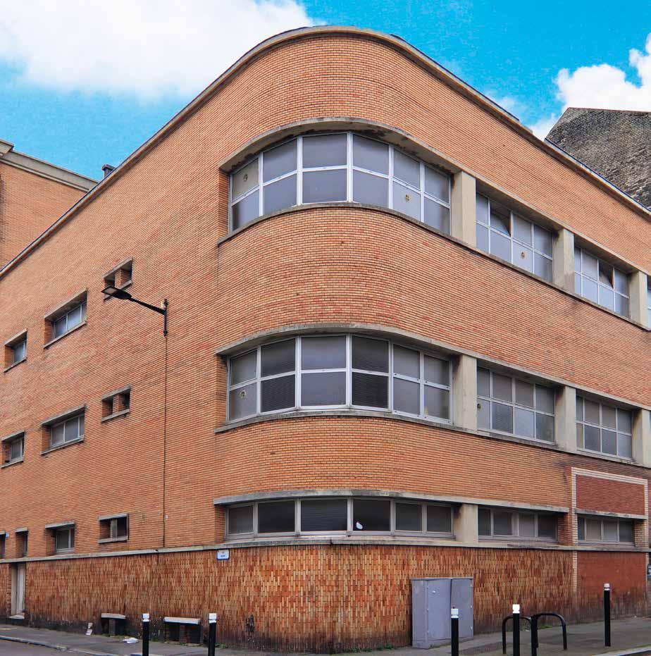 en brique, l’arrière de la piscine est beaucoup plus simple. L’arrondi de l’édifice évoque le galbe d’une coque de paquebot.