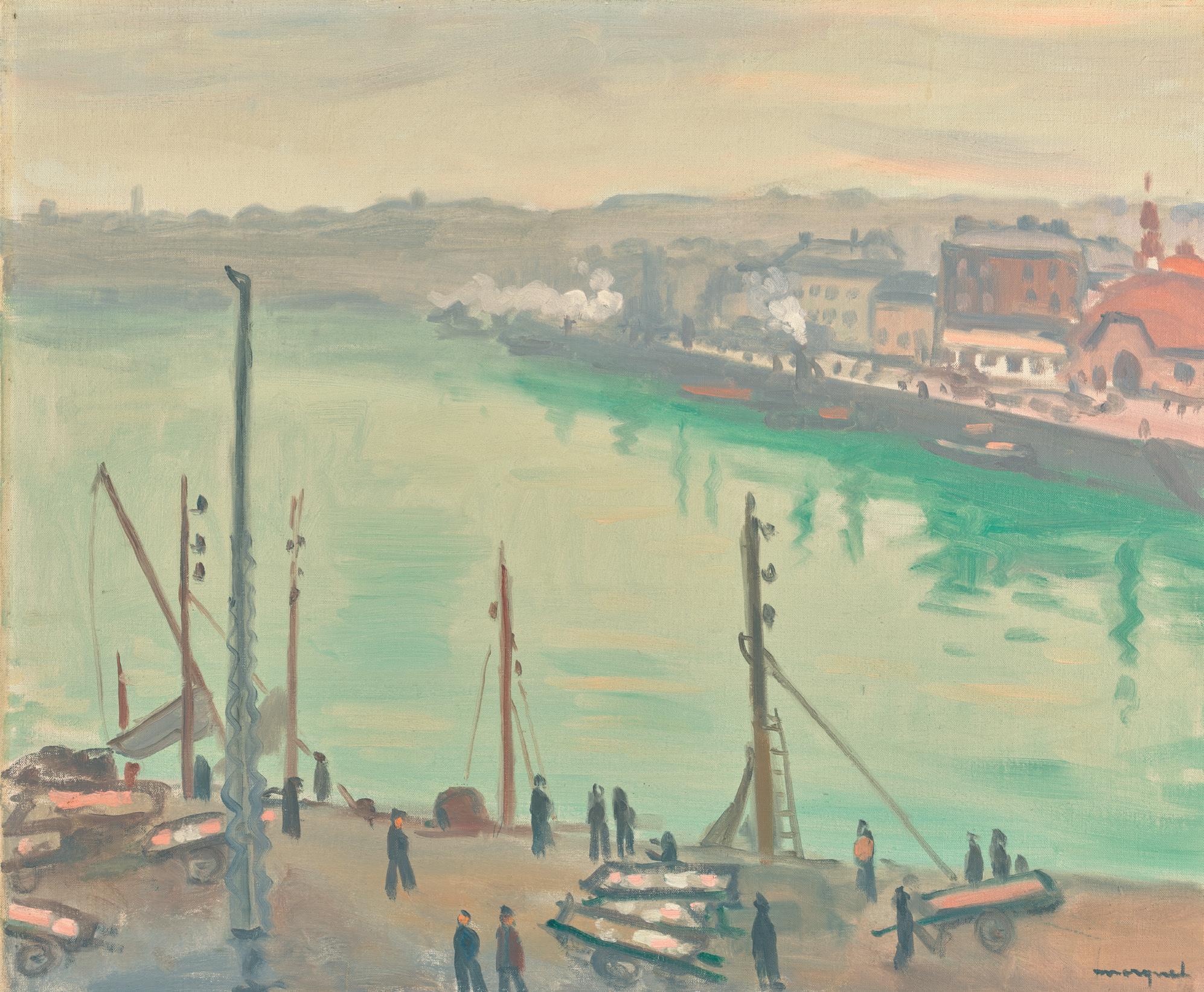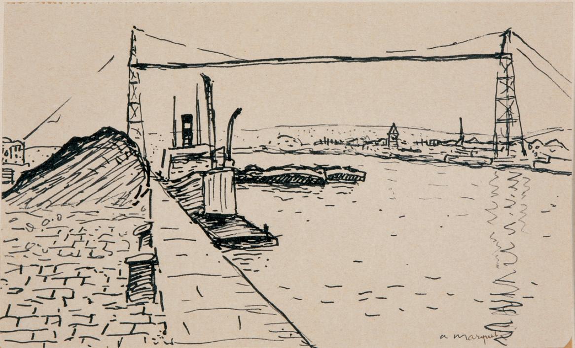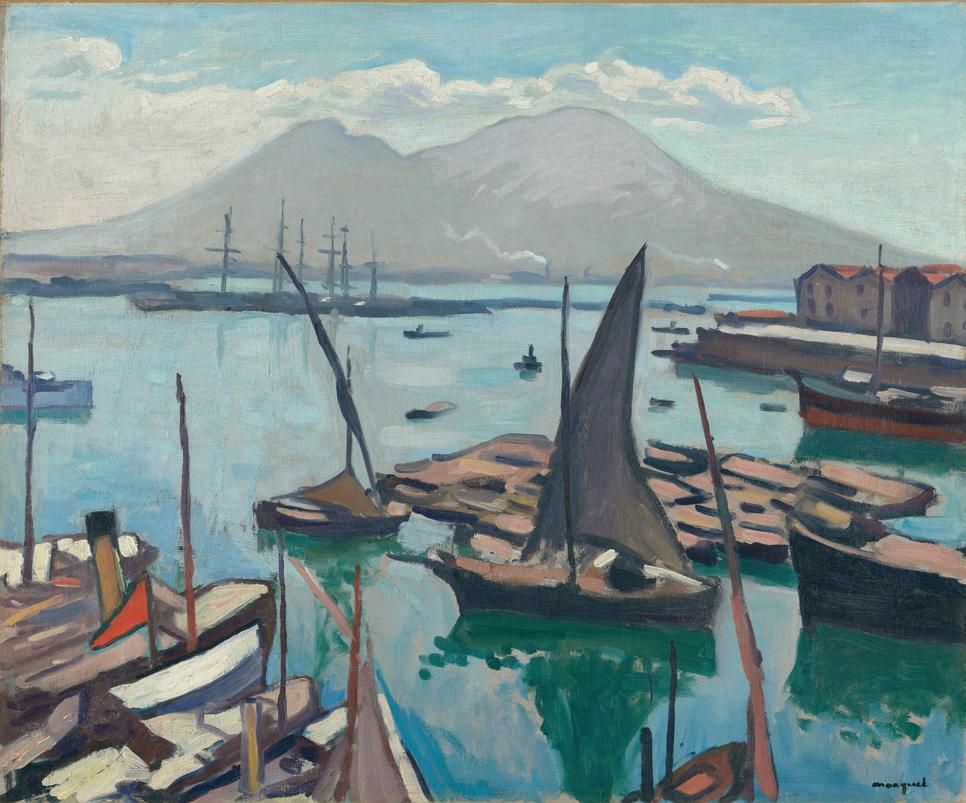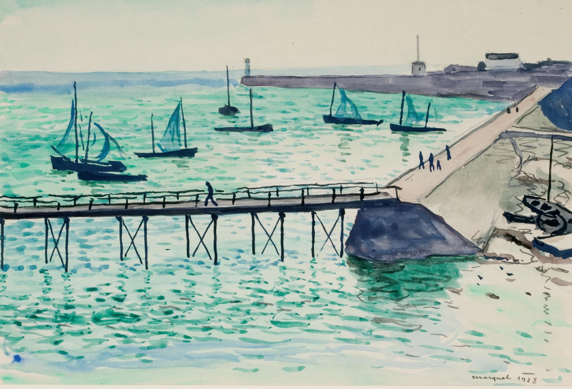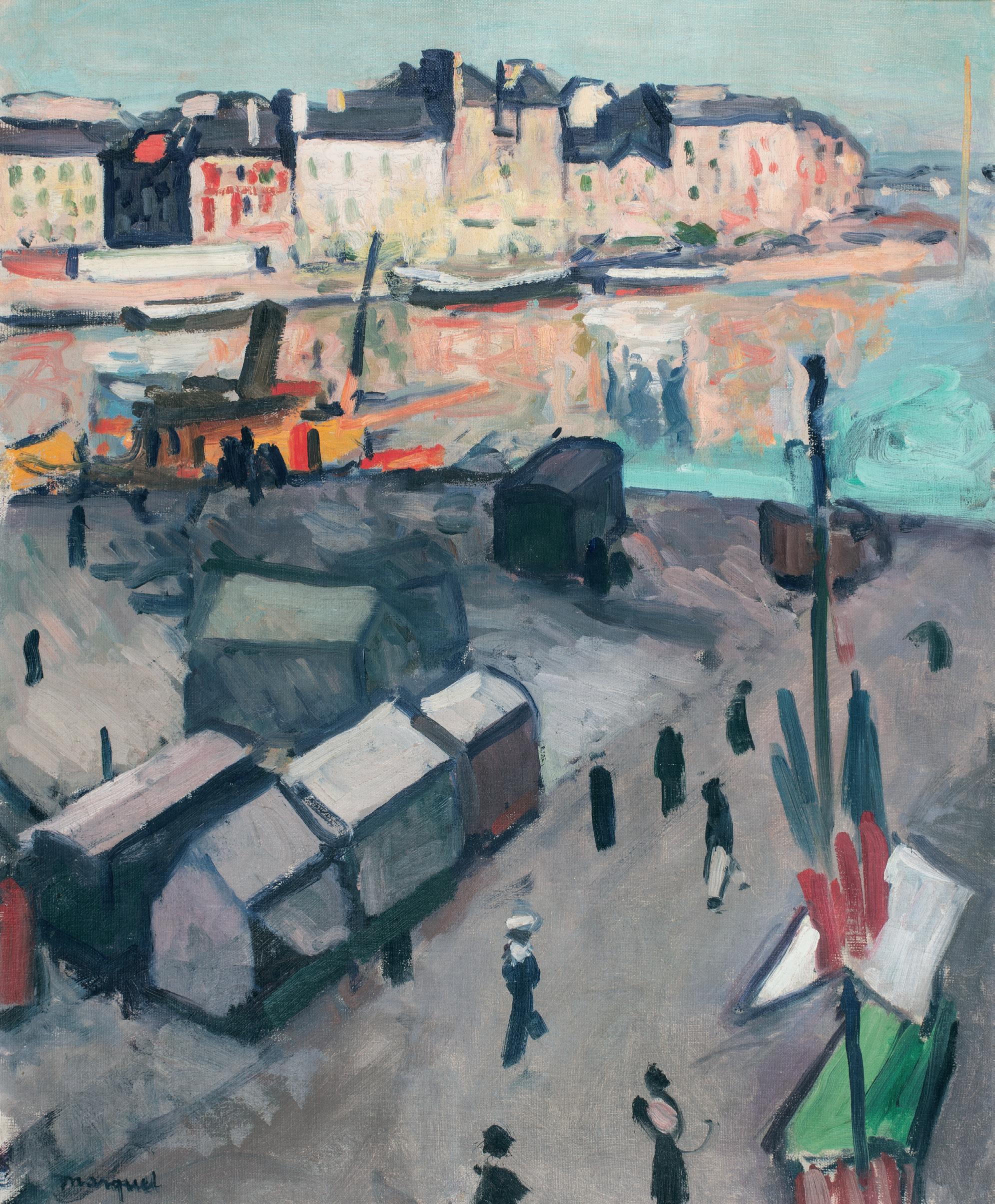 Marquet peignit magnifiquement la mer et les ports, de Naples à Alger en passant par Marseille. Et il peignit magnifiquement Le Havre. Il aimait la modernité des docks, des remorqueurs. Depuis sa fenêtre, presque toujours en surplomb, il sut immortaliser la beauté changeante de paysages marins et urbains qui révélaient toujours une présence humaine.
