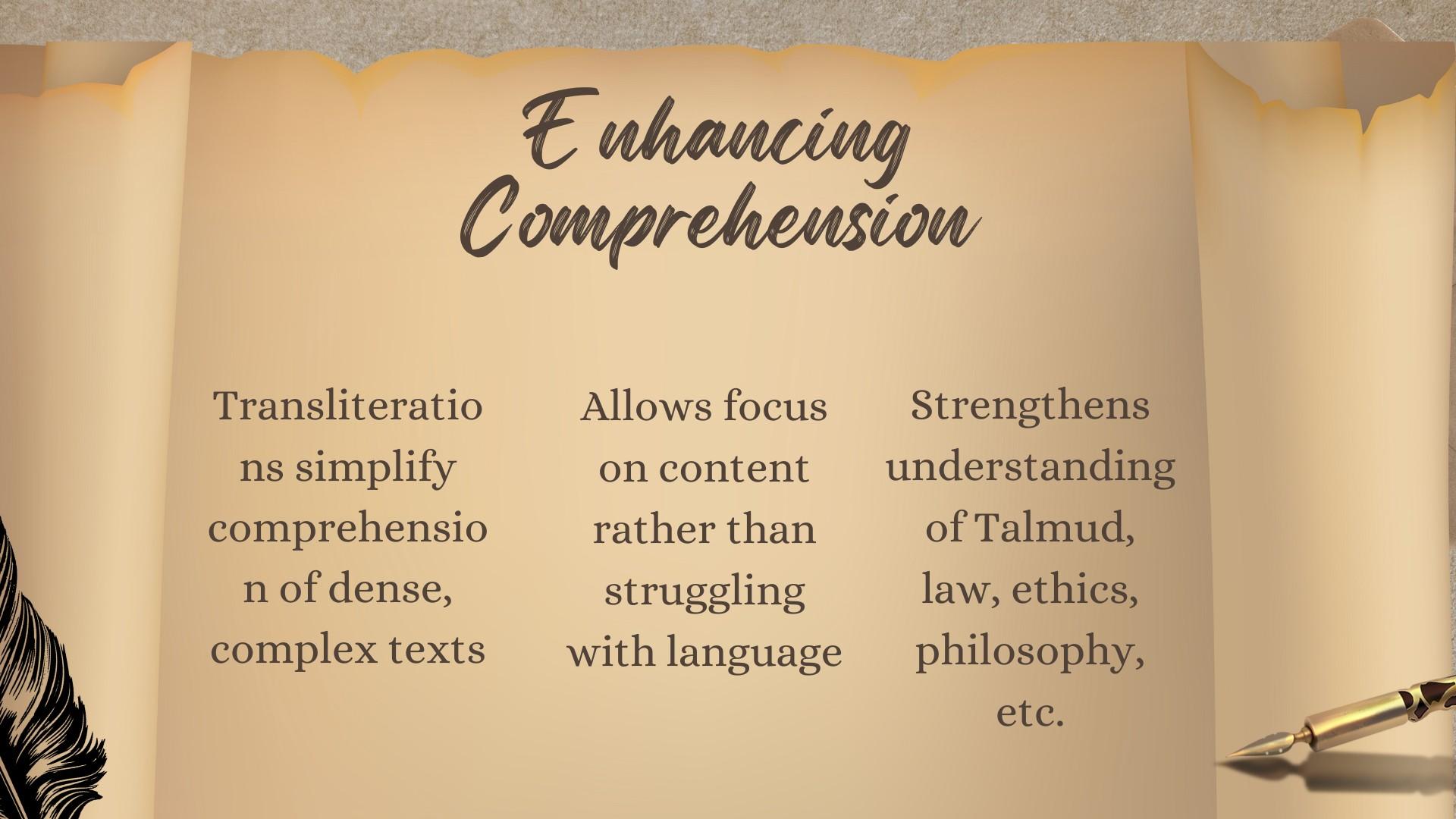 Sacred Hebrew and Aramaic texts contain profound wisdom, yet language barriers obstruct understanding. Transliterations bridge this gap, promoting comprehension and proper pronunciation to unlock deeper meaning. Explore ancient teachings on law, ethics, philosophy, and spirituality without struggling with language. Ben Israel Books provides Hebrew-English transliterations that remove barriers and open doors to Judaism's rich heritage for diverse audiences.