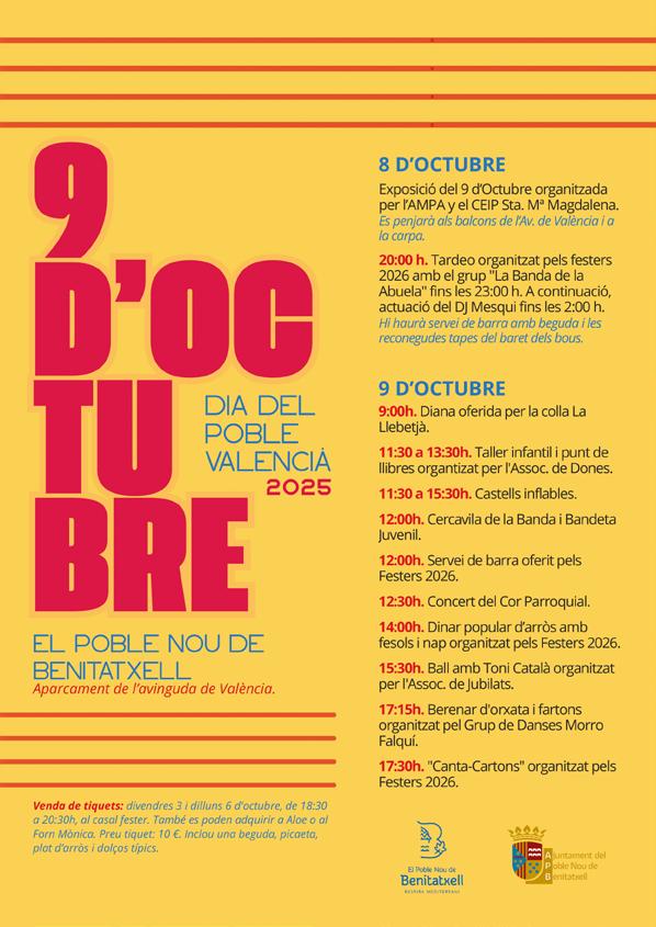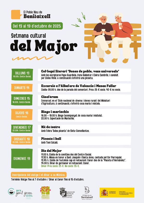 • A las asociaciones de Benitatxell y sus presidentas y presidentes, desde las municipales de música y danza (Banda, Colla la Llebetjà y Danses Morro Falquí), hasta las AA de Dones del Poble Nou de Benitatxell, AA Jubilados y Pensionistas, AA Unión Europea de Mujeres Marina Alta (EUWMA), y Clásicas y Modernas.
