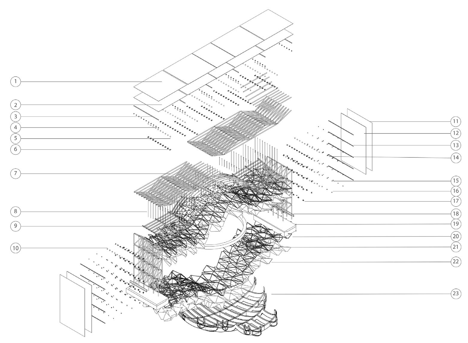 This manipulation of the internal acoustic environment was found through morphing the internal volumes and applying a panellised system which would bounce specific sounds to specific areas of the room.