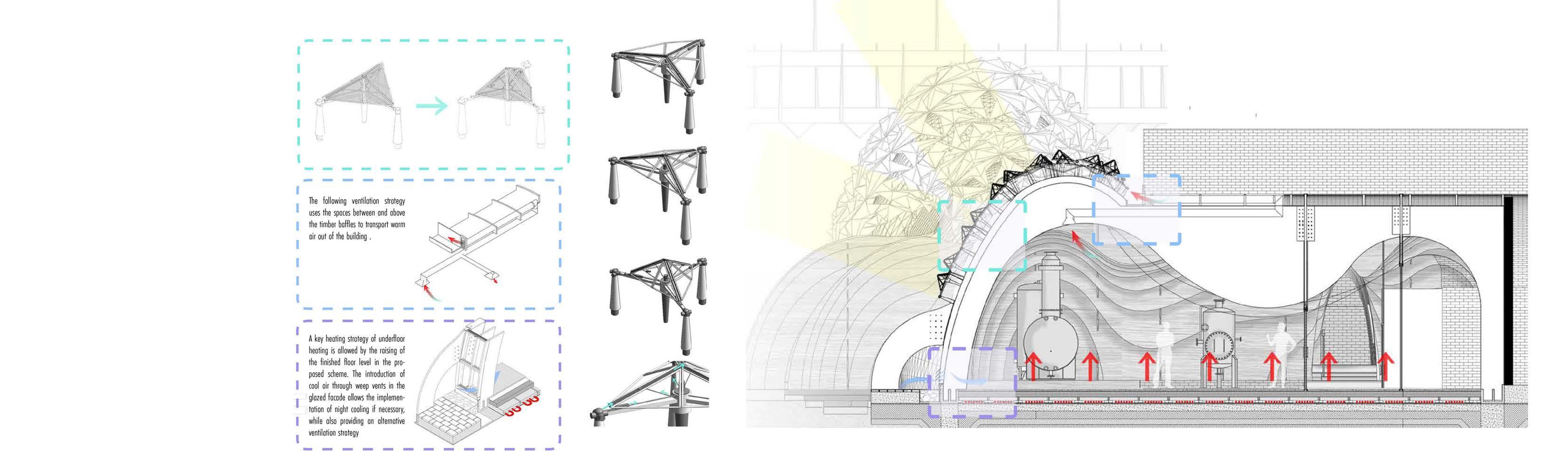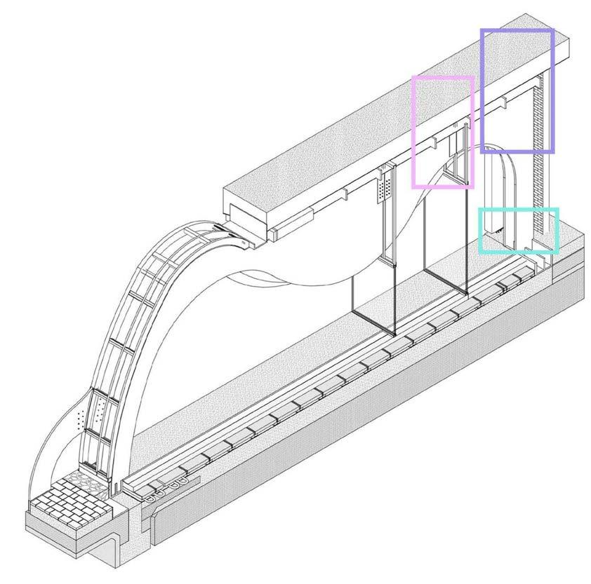 In order to achieve this we developed a glu-lam installation that sat within the existing arches using specific connection details that were sensitive to the existing brickwork.
