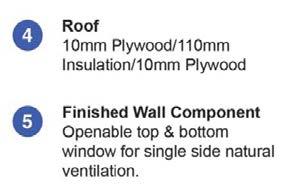 The drawings here show the internal floor arrangement for each adaptable unit and the supporting modular component that is used as the building block for each liveable unit.