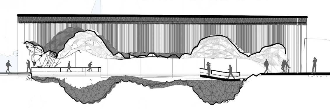 A North to South section across the site that shows the interaction of the internal and external environments. This offers a better insight as to how the facade, void space, and internal programme are arranged.