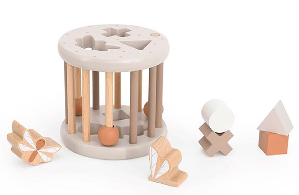 Une magnifique roue de triage en bois qui agrémentera le décor de la chambre de bébé! Comprend 6 formes géométriques différentes. 12+ mois