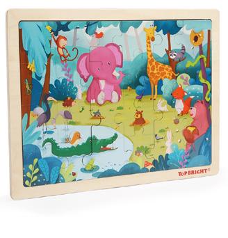 Partez à l’aventure de tri des formes avec des animaux sauvages! Comprend 8 formes colorées d’animaux et de fruits. 12+ mois