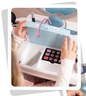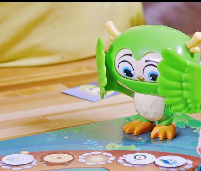 L’enfant découvre les chiffres, les couleurs et les aliments. Une fois insérée dans la bouche du dinosaure, chaque pièce tombe dans son ventre. Le dinosaure la reconnaît et déclenche des phrases correspondantes. 18+ mois