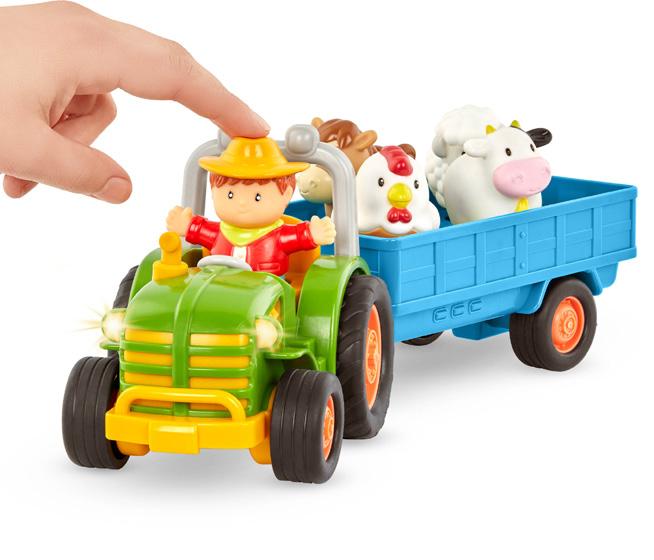 Asseyez vos amis de la ferme dans la remorque, puis regardez-les monter et descendre lorsqu’elle roule! 7 pièces incluses. 18+ mois