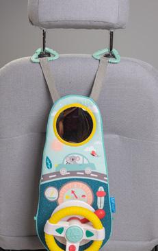 Conçu pour divertir les tout-petits lors de leurs déplacements dans un siège auto orienté vers l’avant, permettant à bébé d’imiter les actions du conducteur. Se fixe facilement à l’appui-tête de la voiture. 12+ mois