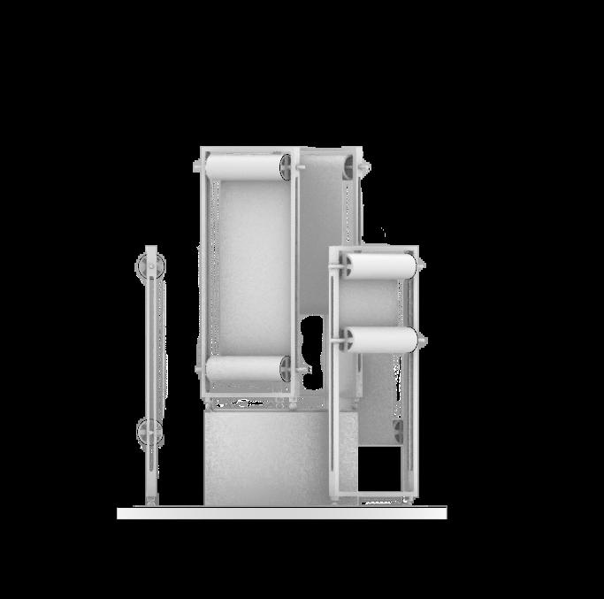 The scroll controlled within the frame will move upwards via a stepper motor, and down via gravity. This is due to the axles of the scroll being controlled within the geometry of the frame.