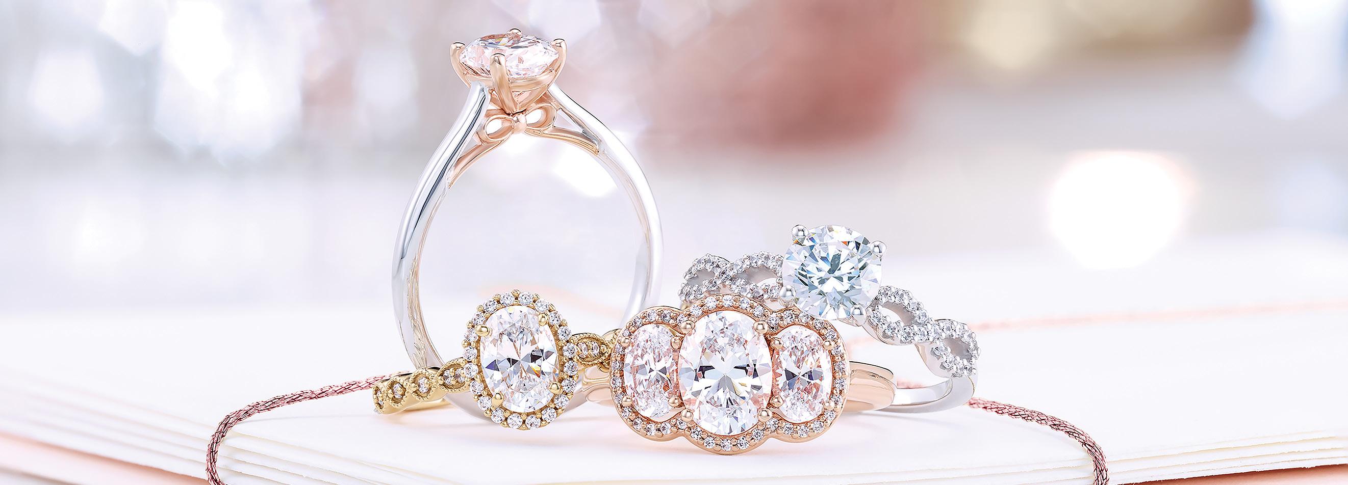 These dreamy styles from designer Jenny Packham combine quality and beauty, with colourless lab grown diamonds set in 18 karat gold.