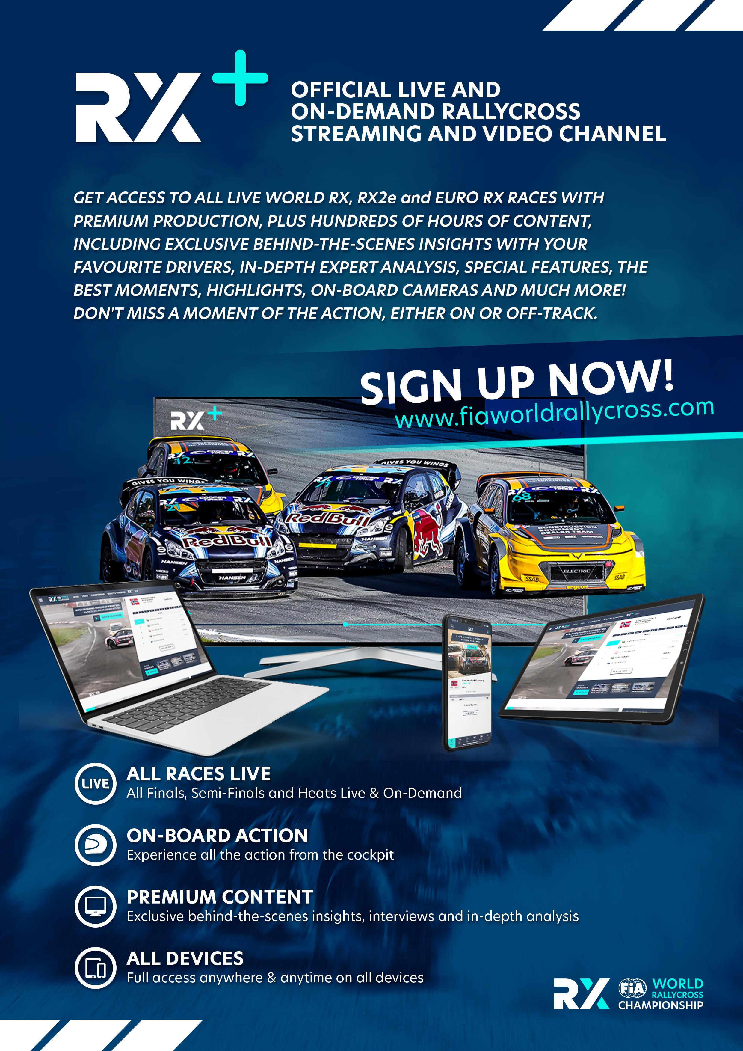 Then, once this weekend’s racing is done-and-dusted, make sure you continue to soak up every moment of the rest of the season via our pioneering, allencompassing RX+ broadcast platform. Details on how to sign up can be found on page 36.