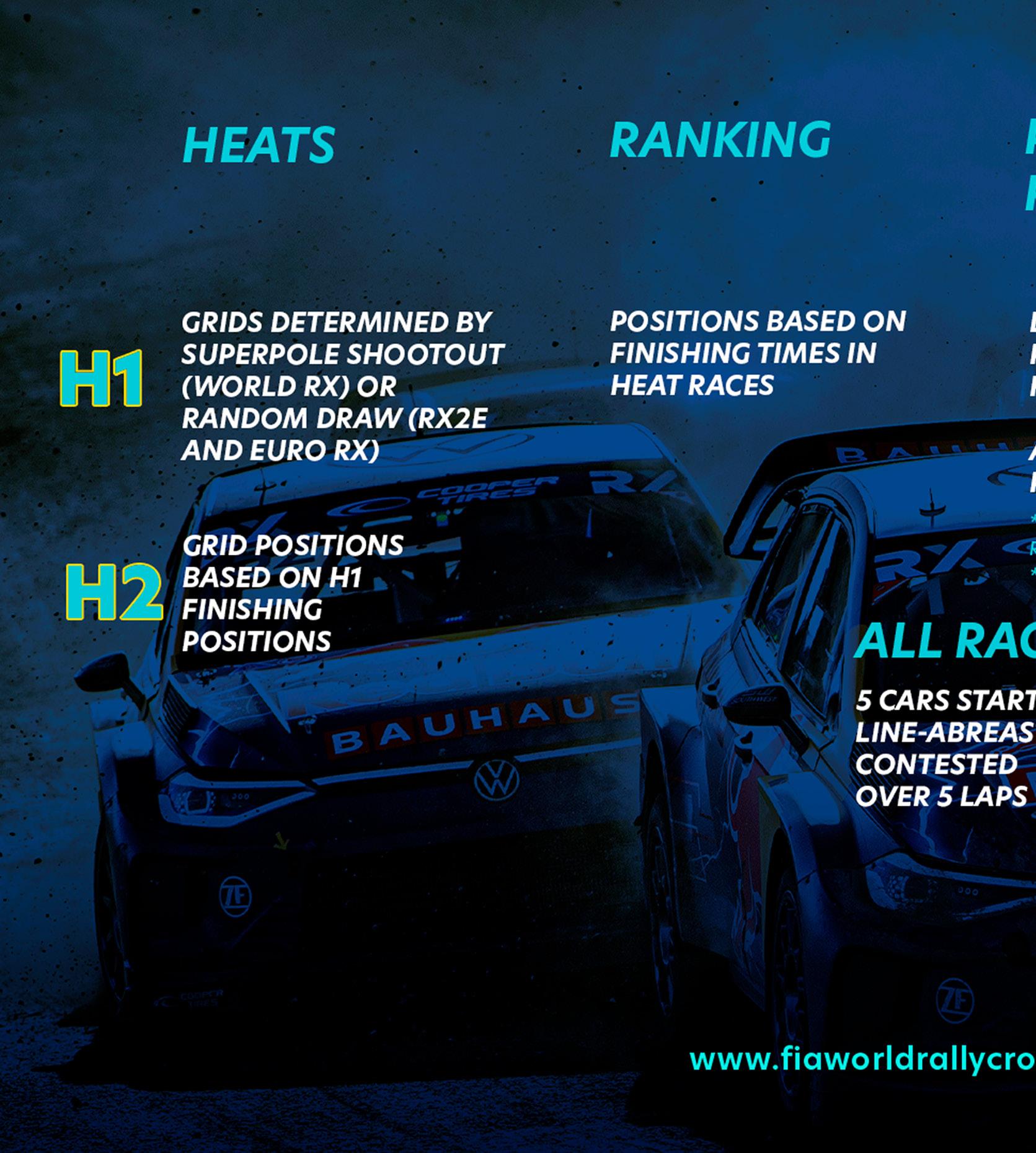 Cette année, le World RX passe à l'électrique dans la catégorie phare, la série s'orientant vers un avenir plus durable et plus respectueux de l'environnement. Ce sont les voitures les plus puissantes (générant 500kW - équivalent à 680bhp - et 880Nm de couple instantané), offrant des accélérations spectaculaires qui feront le spectacle.