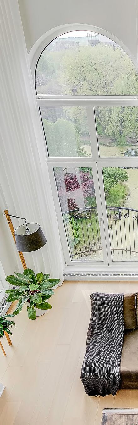 VidéoMagnifique condo situé au niveau penthouse en plein coeur de L'Île-des-Soeurs. Vue absolument splendide du centre-ville, de la montagne, des couchers de soleil, du lac et de la verdure environnante du parc Lacoursière. L'architecture de cette unité la rend unique et c'est aussi l'une des rares à avoir des fenêtres surdimensionnées en rond offrant beaucoup de cachet pour encore plus de clarté. Intimité assurée, aucun vis-à-vis. 2 stationnements intérieurs en tandem très bien situé. 2 espaces de rangement dans le garage avec cuve de lavage privée.