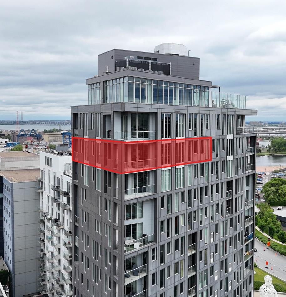 La résidence haut de gamme Le Conservatoire offre une unité de 1,887 pc au 3 e étage, avec mezzanine, plafonds de 12 à 17 pi et vue panoramique sur Montréal. Matériaux nobles, finitions haut de gamme, 2 balcons et 2 garages complètent cette adresse d’exception.
