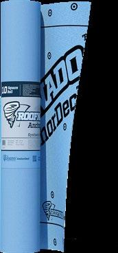 Typical Value Roll/Pallet Specs 11 mils MD 95 lbs (43 kg) | CD 85 lbs (38.5 kg) MD 18 lbs (8.16 kg) | CD 16 lbs (7.26 kg) Pass Class A 6 Months -40° F - 240° F 250’ / 76.2 m 48” / 1.2 m 23 lbs / 10.4 kg 10 sq / 93 m² Switch to Roofnado™ and start saving on labor, time & money. Contact us today! www.roofnado.com
