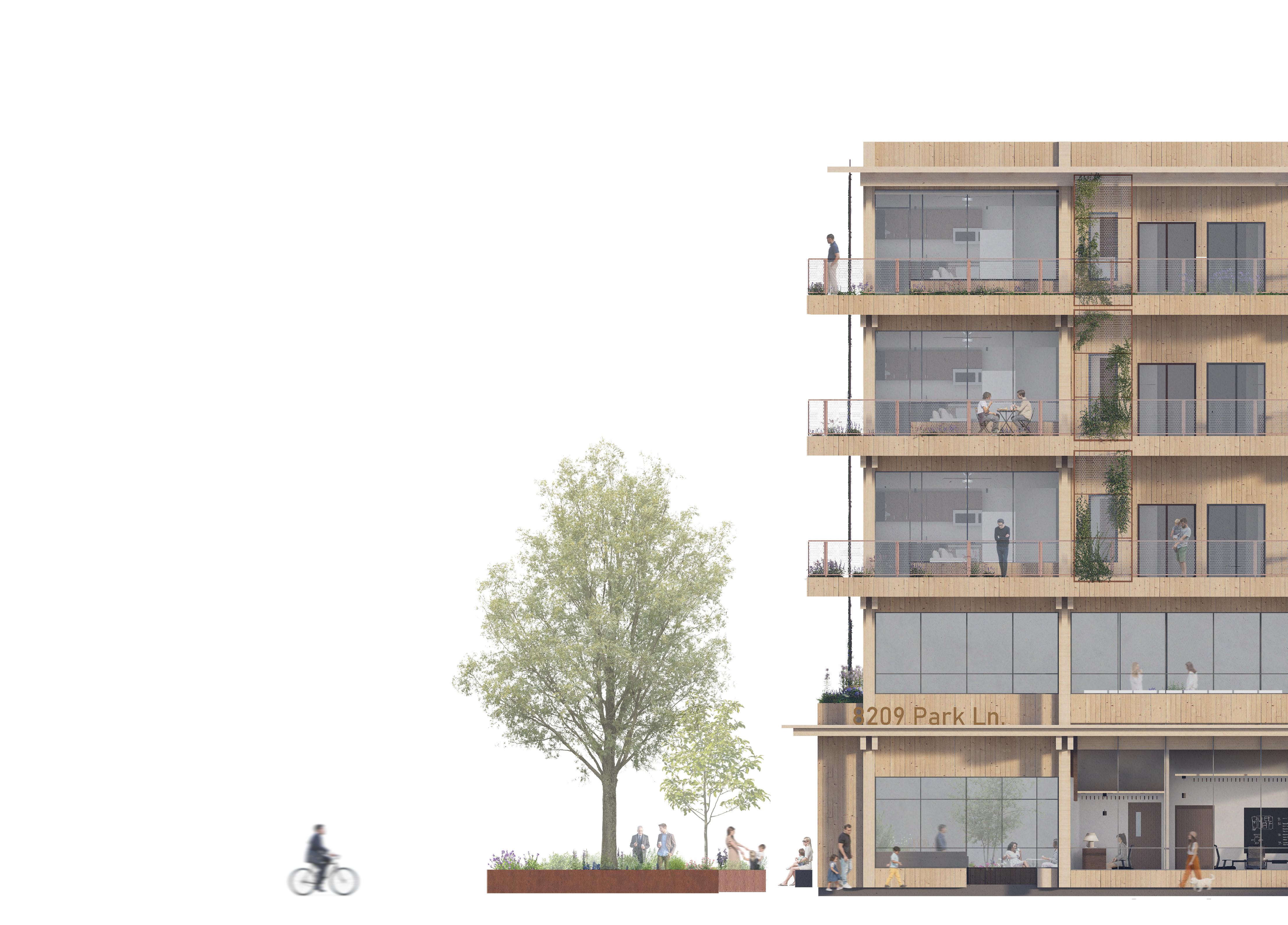 Situated at the intersection of two major roads, the project creates an active street corner positioned near key amenities. By leveraging its well-connected location, 8209 Park Lane aims to create a community-oriented living environment for residents of the Vickery Meadow neighborhood, making the project a catalyst within a marginalized yet developing area.