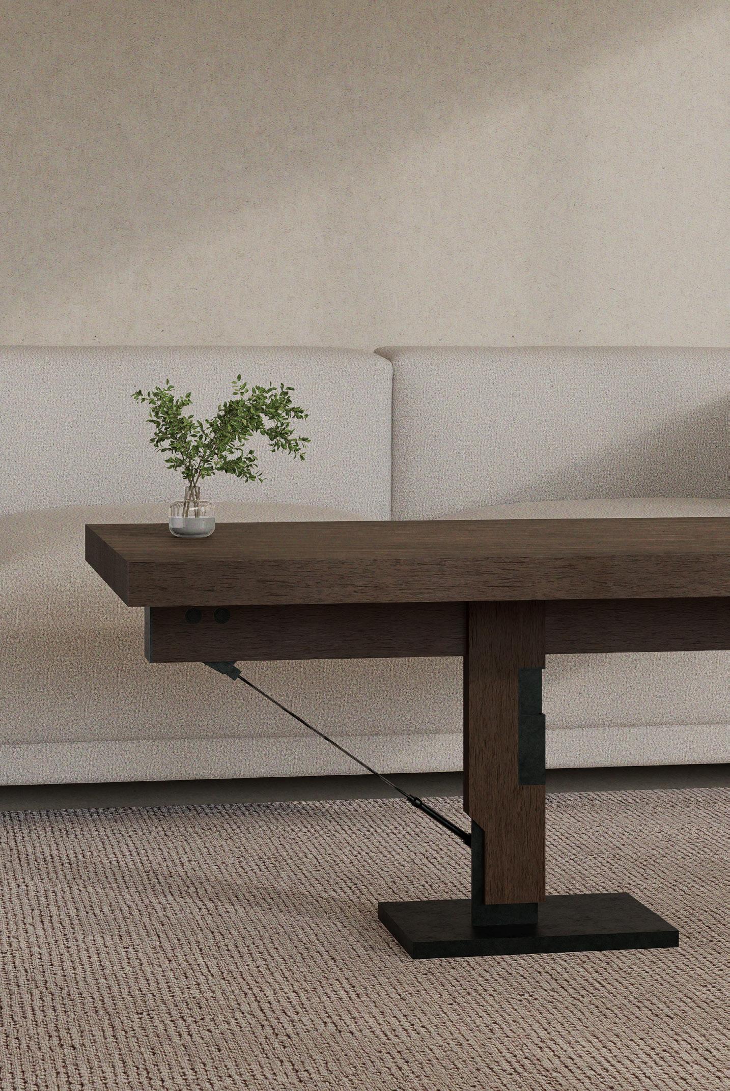 Counterbalance is a sculptural exploration of balance, tension, and material honesty. Constructed from solid black walnut wood and steel, the table’s cantilevered form defies gravity while being supported by a system of wood and steel connections. The table surface floats above a heavy steel base, displaying the equilibrium between weight and support. Subtle detailing and a refined material palette highlight the dialogue between the compression and tensional qualities in wood and steel, resulting in a piece that feels both grounded and suspended.