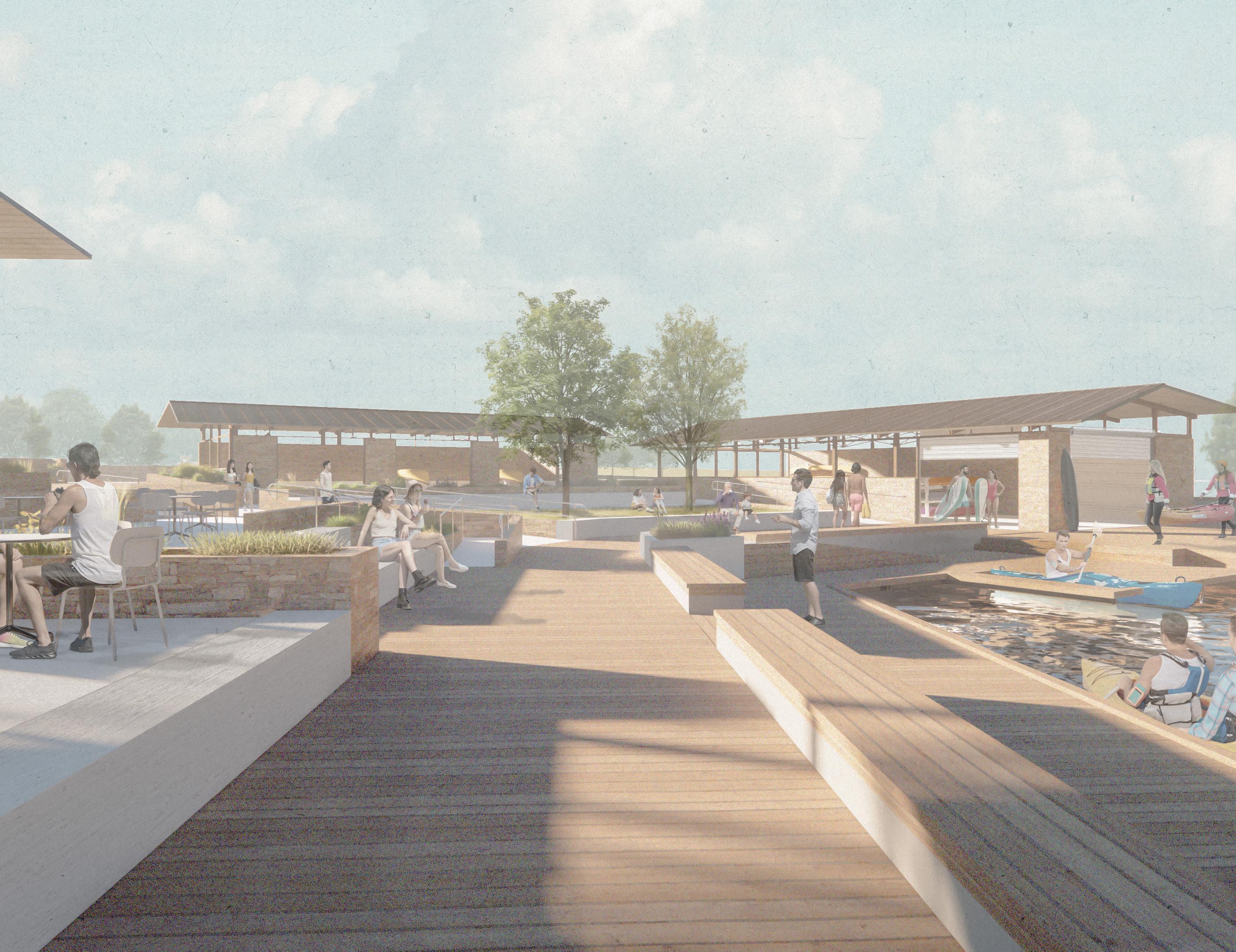 The Lake Thunderbird Boathouse aims to give users a meaningful detachment from the distractions of their daily lives by providing an immersive environment for leisure and relaxation.